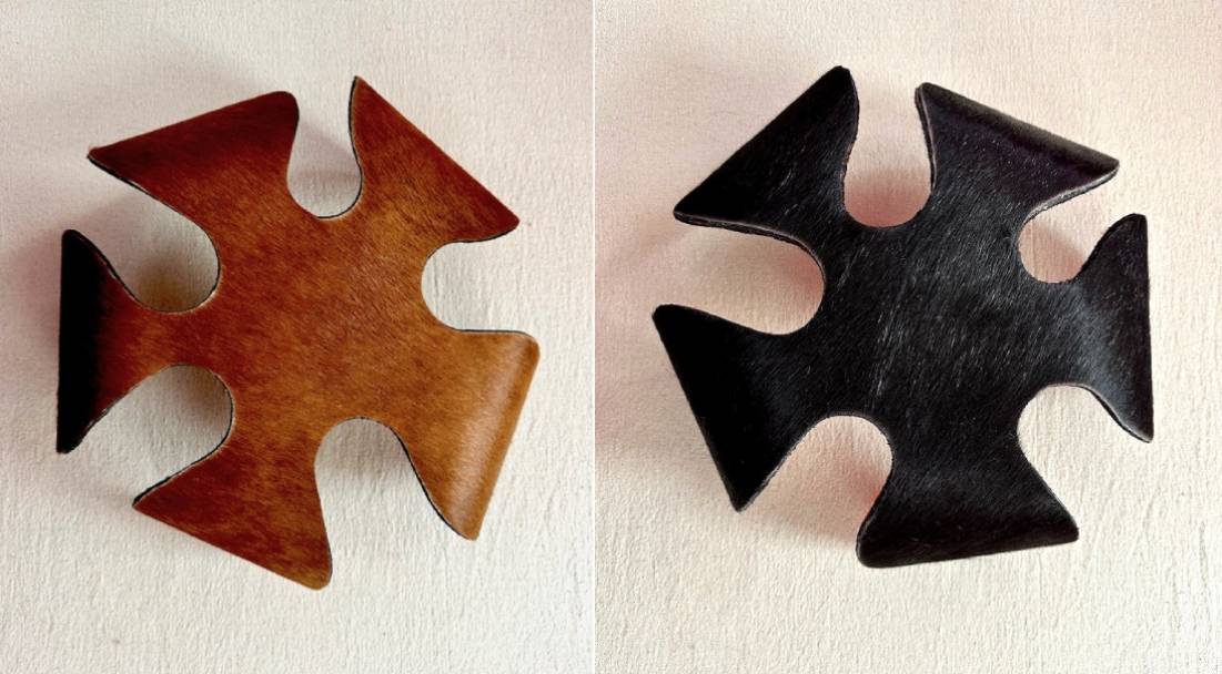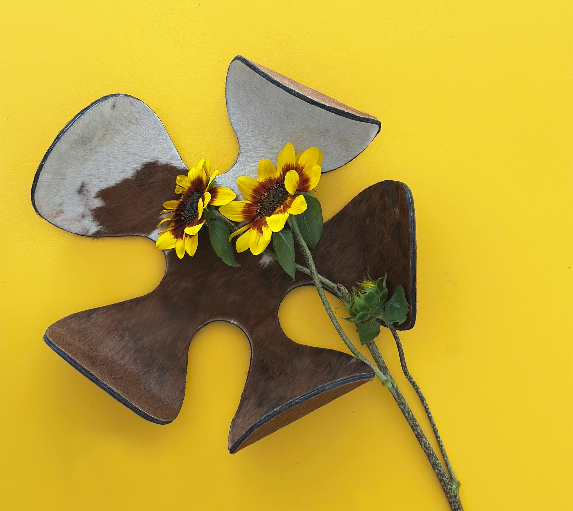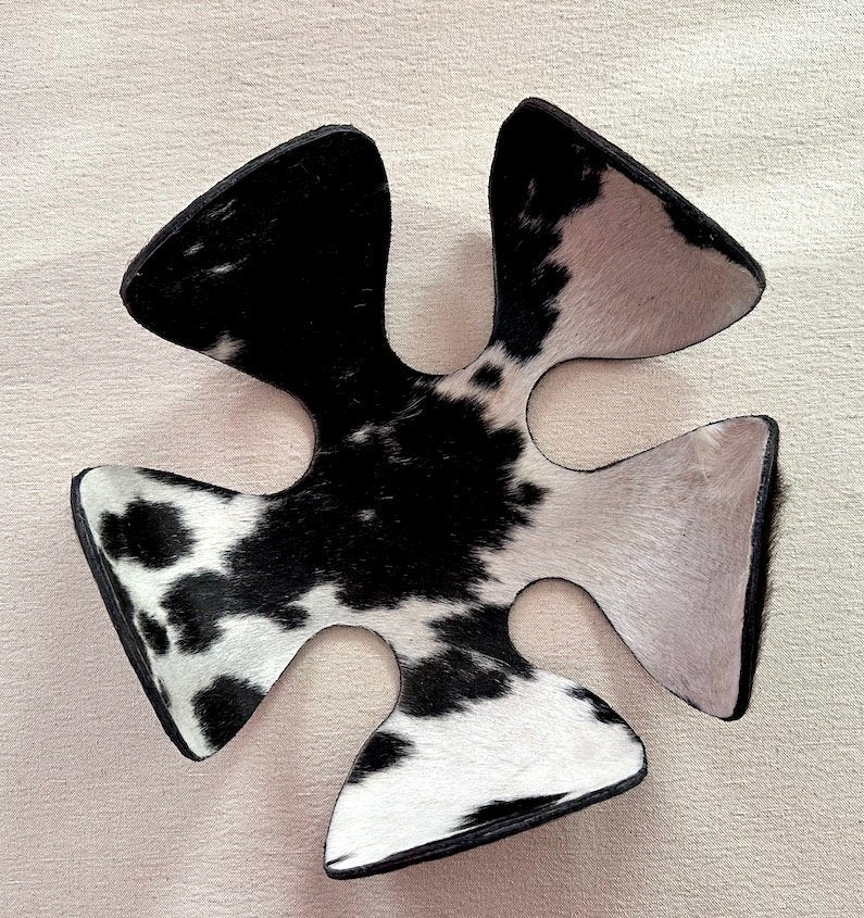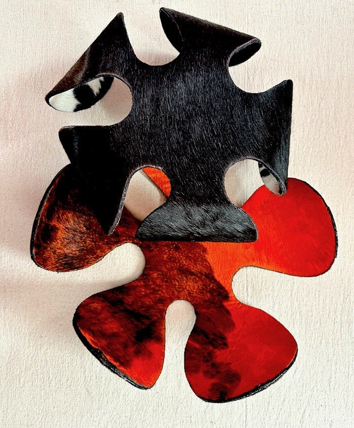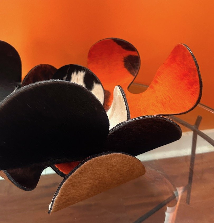The FLORJULIA :: BOWL combines artisanal craftsmanship with sustainable materials. This flexible metal bowl features a striking design crafted from recycled metal, complemented by genuine hide accents in natural or richly dyed finishes. The integration of wood elements adds warmth and organic texture, creating a piece that bridges contemporary design with traditional techniques. Ideal for those seeking functional art that reflects environmental consciousness without compromising on aesthetic sophistication.