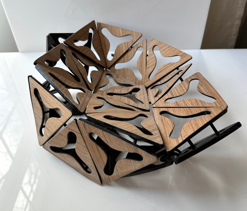 Transform your tabletop with these innovative tri flex bowls, where artisanal resin meets natural wood or natural hides in a striking reversible design. Each piece showcases dual color palettes—flip between complementary hues to match your décor or mood. The flexible resin construction resists cracking while maintaining structural integrity, making these bowls equally suited for display or functional use. Hand-crafted at our upstate studio with meticulous attention to detail.